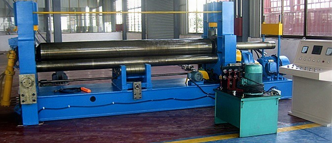 卷板機是對板材進行連續(xù)點彎曲的塑形機床,具有卷制O型、U型、多段R等不同形狀板材的功能。卷板機由于使用的領域不同,種類也不同。從輥數(shù)上分為三輥卷板機和四輥卷板機。三輥又分對稱式三輥卷板機,水平下調式三棍卷板機,弧線下調式卷板機,上輥萬能式三輥卷板機,液壓數(shù)控卷板機。從傳動上分機械式和液壓式。