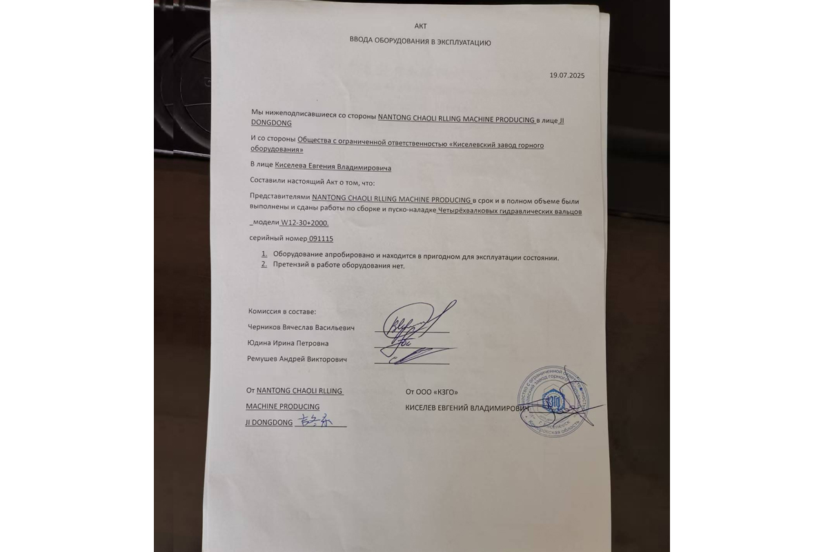 近日,我公司自主研發(fā)制造的一批卷板機設(shè)備順利出口到了俄羅斯。為確保卷板機設(shè)備能夠順利投產(chǎn),公司售后服務(wù)部工程師團隊專程為客戶提供了全方位的設(shè)備調(diào)試、操作培訓(xùn)及技術(shù)指導(dǎo)服務(wù)。